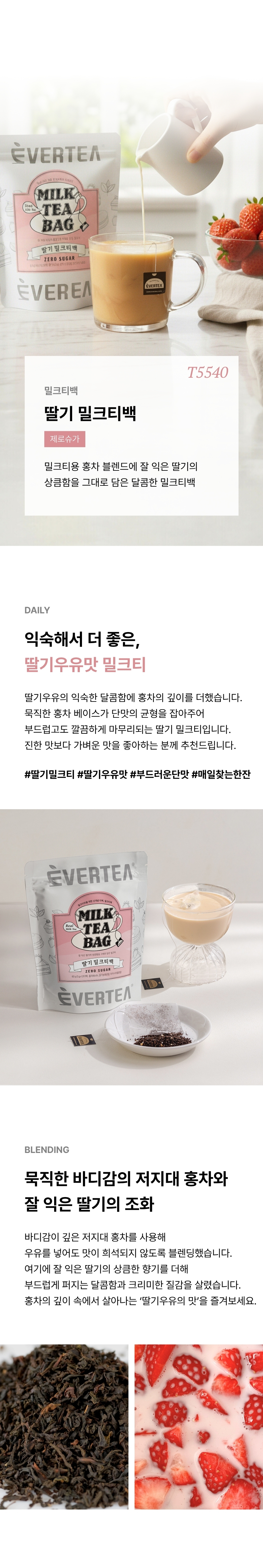 [T5540] 잘 익은 딸기의 상큼함을 한가득 담은 밀크티를 간편하게 만들 수 있는 신개념 티백